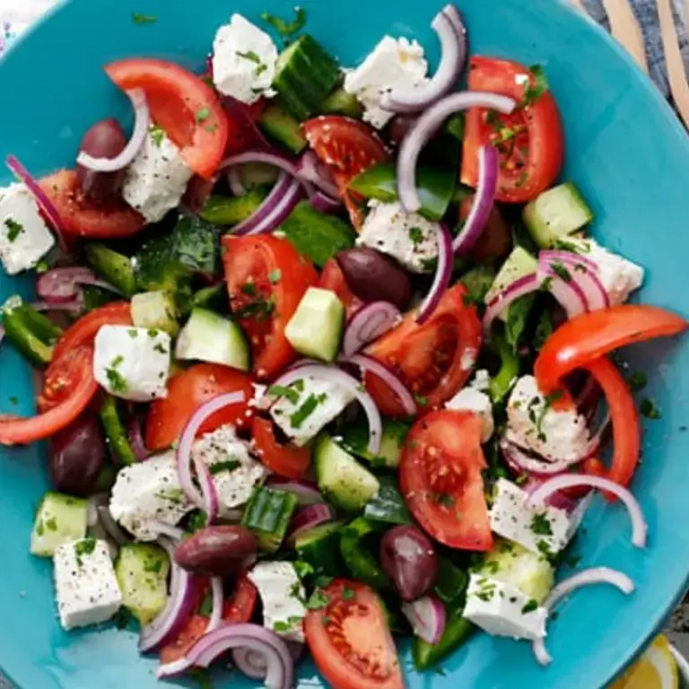 L'insalata greca originale, conosciuta come "horiatiki", affonda le sue radici nella cucina tradizionale greca. Questa fresca e colorata preparazione era originariamente una semplice combinazione di ingredienti locali come pomodori, cetrioli, olive nere, feta, cipolla rossa e origano, condita con olio d'oliva. Oggi è un piatto emblematico della cultura culinaria