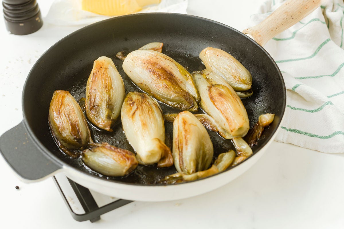 Inizia pulendo e tagliando le indivie belghe a metà o a quarti, a seconda delle dimensioni. Lessale in acqua bollente salata per circa 5-7 minuti, finché non diventano tenere ma non troppo morbide. Scolale e lasciale raffreddare leggermente.