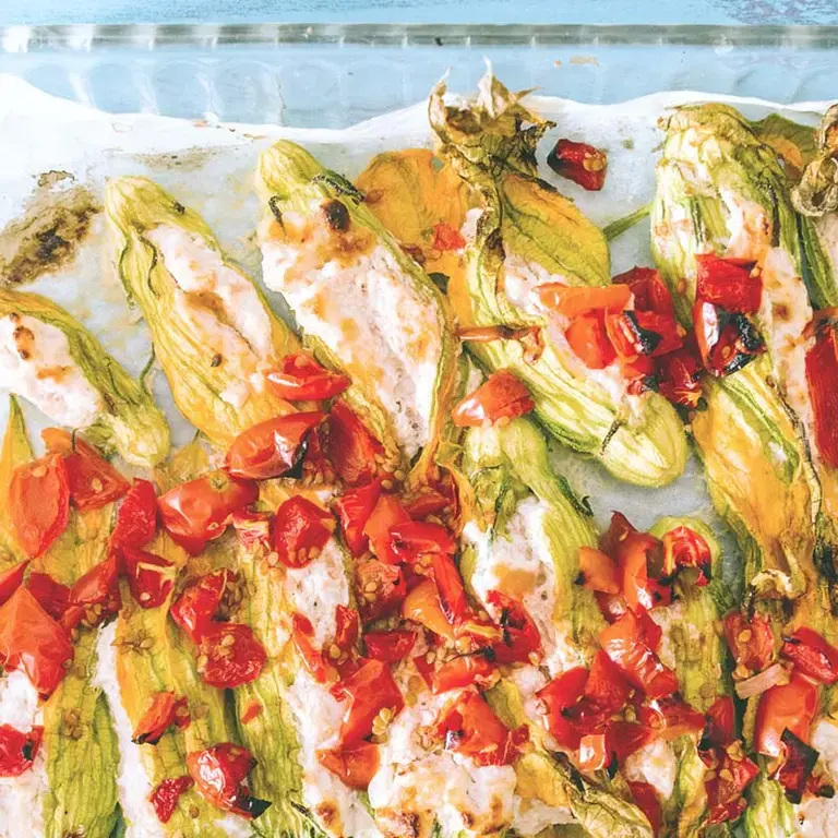 I fiori di zucca ripieni al forno possono essere anche preparati inserendo all’interno un filetto di acciuga che donerà un sapore ancora più interessante a questo piatto semplice ma delizioso. Se invece siete amanti delle ricette vegane, farcite i vostri fiori con una crema grossolana di zucchine crude e menta.