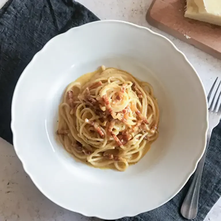 La carbonara è una ricetta tipica della regione Lazio, più precisamente della città di Roma. La storia di questo antico piatto è ancora incerta, ma l’ipotesi più accreditata è che sia comparso sulle tavole italiane intorno al 1944 quando i soldati americani cercavano ingredienti a loro familiari per nutrirsi (uova, bacon, spaghetti). La prima versione non era come la carbonara che conosciamo oggi, ma alcuni cuochi, vedendo l’intruglio preparato dai soldati, organizzarono la ricetta nel modo che è arrivato con successo fino ai giorni nostri.
