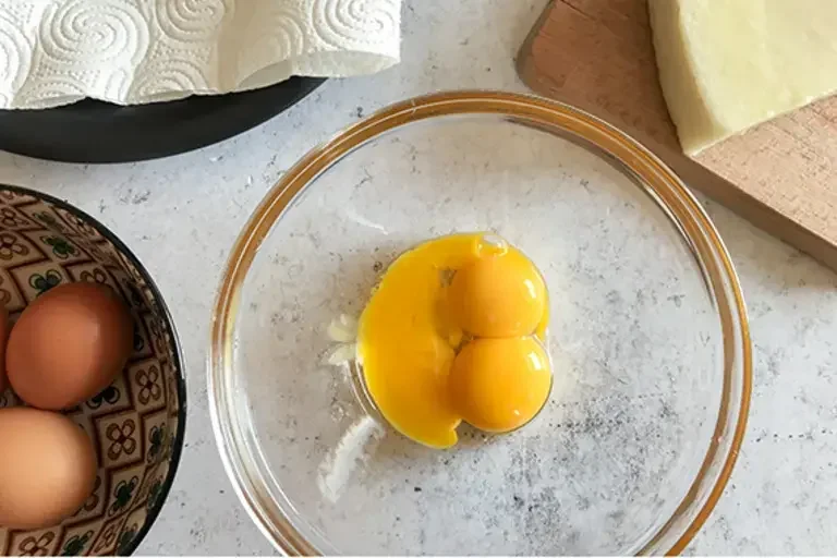 Mentre gli spaghetti sono in cottura, rompete le uova e mettete i soli tuorli in una terrina di vetro molto ampia.