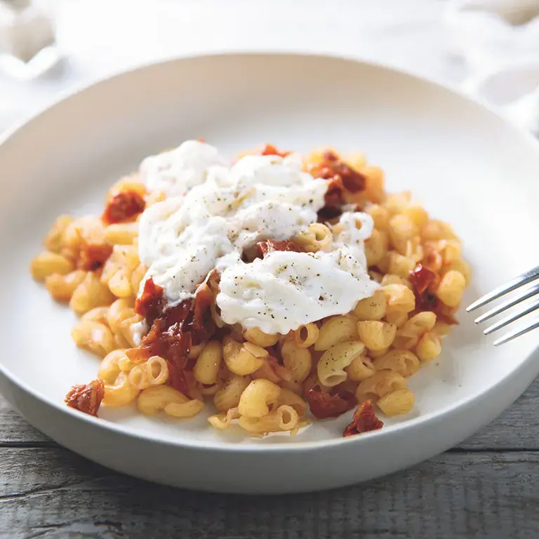Con soli quattro semplici passaggi, la nostra ricetta di pasta con stracciatella e pomodorini vi permetterà di preparare un primo piatto veloce e delicato, perfetto da gustare anche in estate come insalata di pasta.