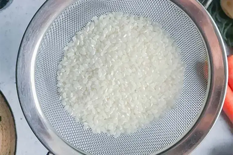 Lavate bene il riso e quando l’acqua risulterà trasparente mettetelo in un tegame. Coprite con 200 ml di acqua e coprite con un coperchio.