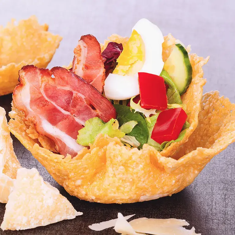Ideali per un aperitivo, ma perfetti per fare un impiattamento diverso da solito anche per primi e secondi piatti, i cestini di Parmigiano sono sempre una bella (e buona) soluzione. Ideali anche per rendere più bello un pranzo o una cena a buffet, i cestini di Grana (o di Parmigiano), si preparano in pochi minuti e hanno sempre un’ottima resa estetica. Eccovi tante gustose idee per preparare le cialde di Parmigiano ripiene.
