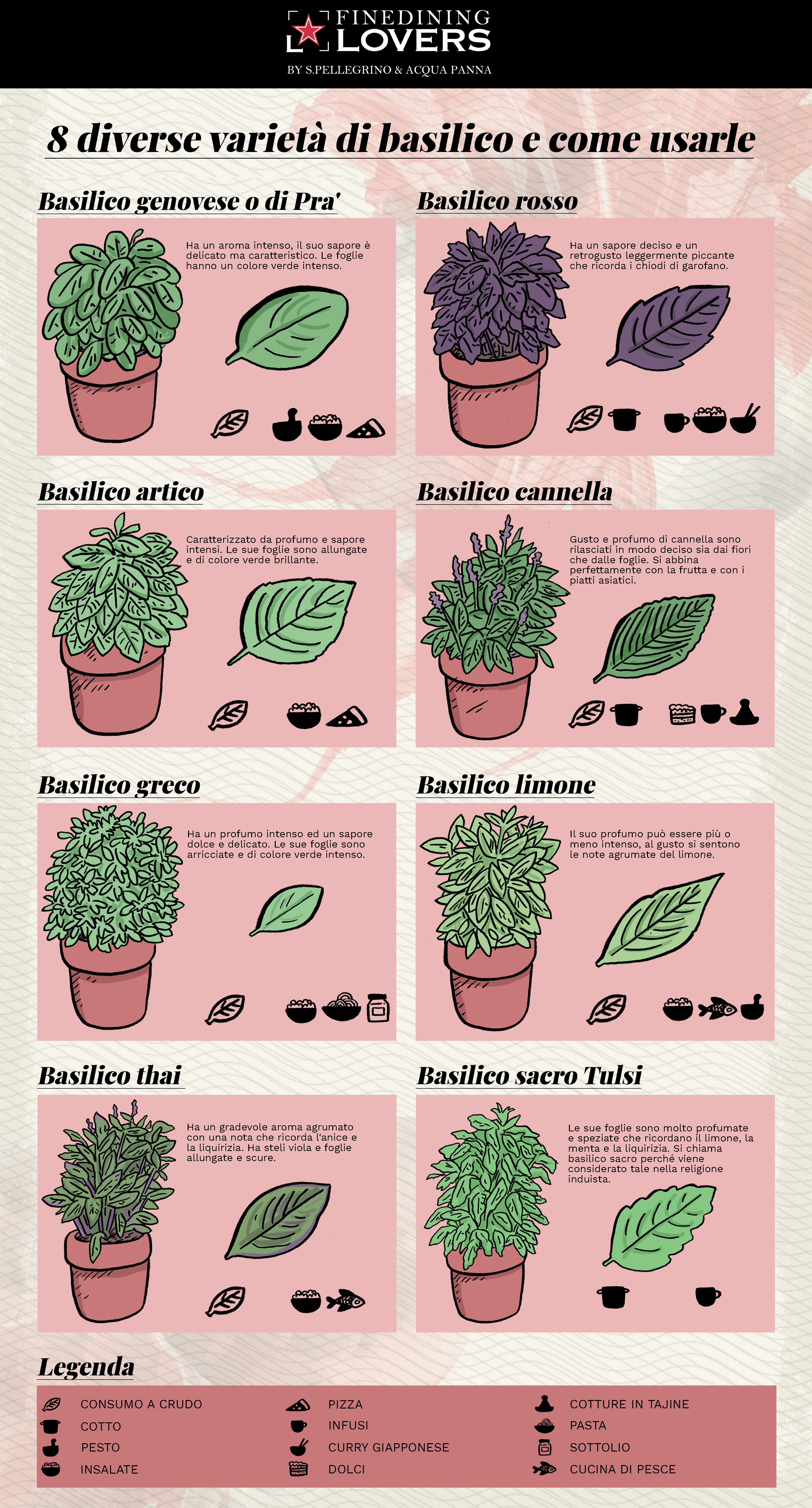 Scoprite nell’infografica le caratteristiche delle principali varietà di basilico.