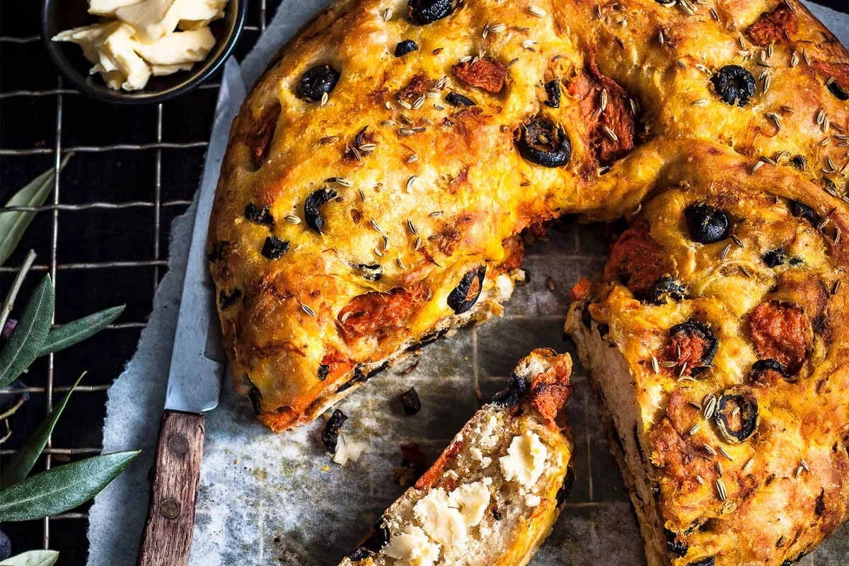 L'ultimo antipasto che ti proponiamo è un delizioso pane alla zucca con olive e pomodori secchi. Questo piatto è un'idea semplice, ma allo stesso tempo originale. Il pane alla zucca è soffice e leggero, e il suo sapore dolce si combina benissimo con il gusto deciso delle olive e dei pomodori secchi. Per un tocco extra di sapore, puoi aggiungere delle erbe aromatiche come il rosmarino o il timo direttamente nell'impasto.