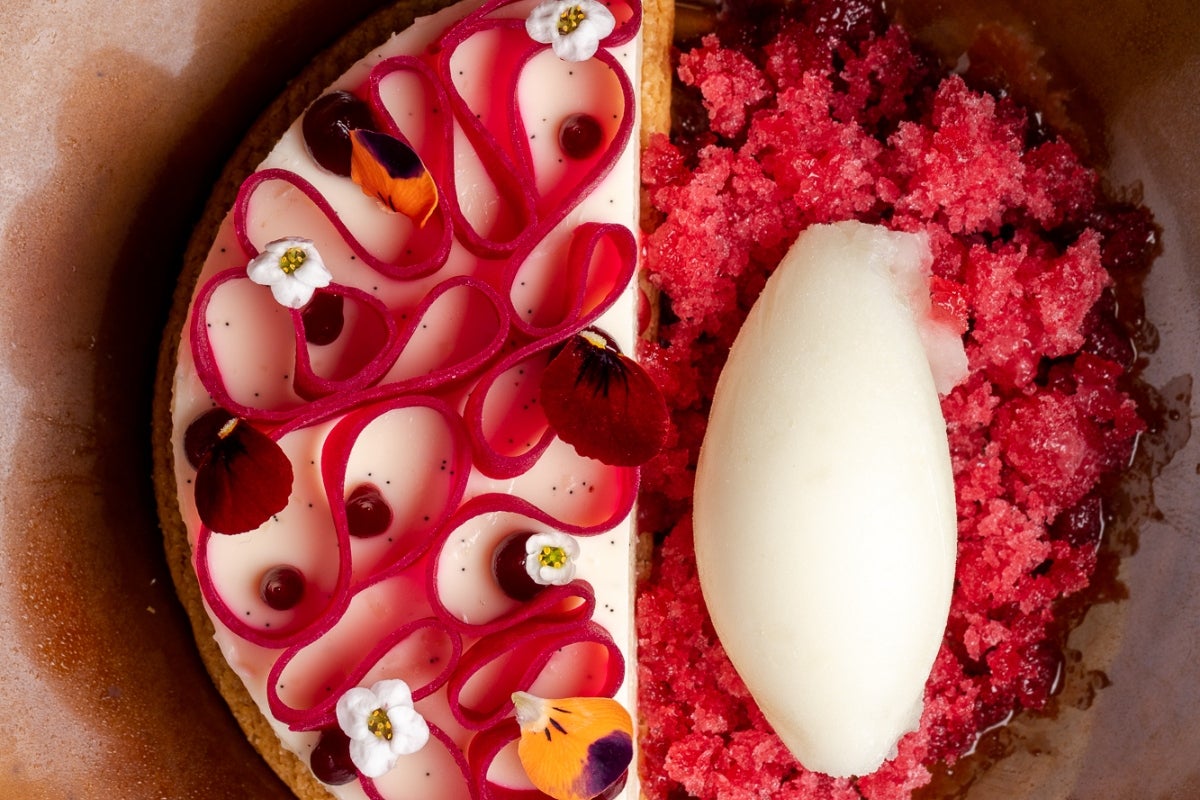 Come sempre, chef Mancino regala creazioni gastronomiche di grande impatto estetico, non prive di calore: quadri e tavolozze variopinte, che raccontano la stagione autunnale in Versilia, tra sentori di brace, sapori di terra e di mare. Ecco allora piatti eleganti e originali, dove il territorio viene narrato con mood internazionale e con un approccio ad alto tasso creativo: dal Capitone alla brace, foie gras, rape e rabarbaro alla Pluma di maiale con ostriche, cavolo riccio e ravanelli fermentati alla Barbabietola, namelaka al mascarpone e granita di fuoco (foto in apertura).