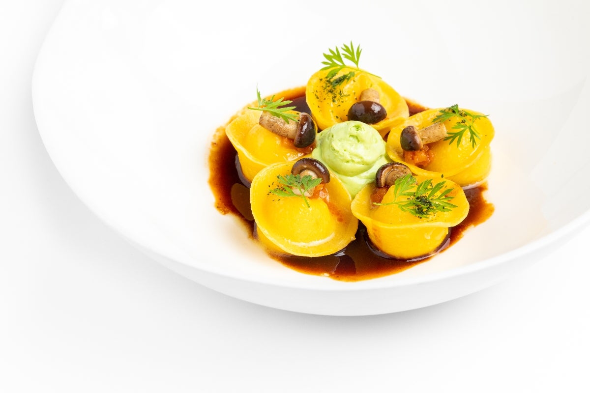 “Sono particolarmente entusiasta di questo menu, perché dopo tanti anni riprendo in mano degli ingredienti che non ero più abituato a maneggiare, per via della chiusura invernale”, racconta. “Quello che ho ideato è un percorso all'insegna dei sapori autunnali: funghi, zucca, gusti caldi, più rotondi e pieni, sono la rappresentazione per eccellenza della convivialità, di quella calda atmosfera di casa che fa stare bene le persone”.