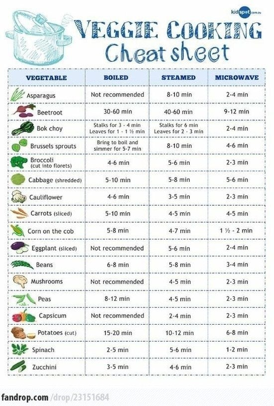 Fan Drop ha messo a disposizione una pratica infografica che offre suggerimenti per cuocere una buona varietà di verdure, e noi l'abbiamo tradotto per voi.