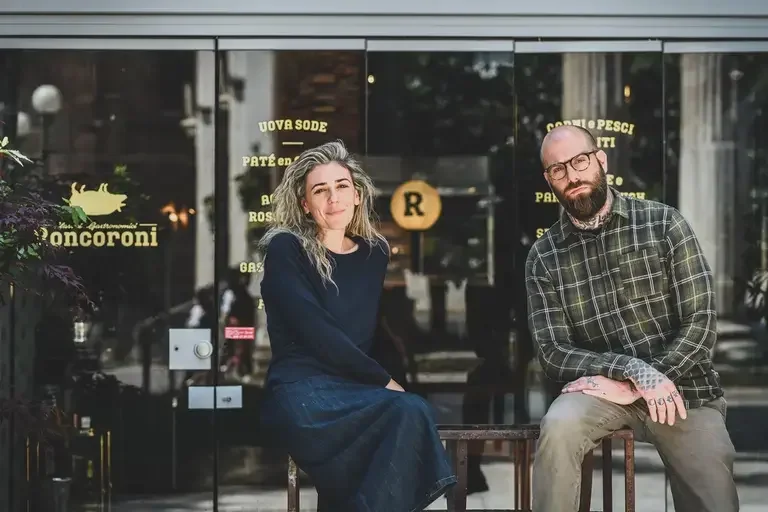 Classe 1983, Eugenio Roncoroni ha iniziato tra le trattorie milanesi e i catering, ma è dall’altra parte dell’oceano che ha messo a fuoco il suo sguardo da cuoco. San Francisco, le cucine di Janine Falvo, Michale Tusk e Angelo Garro (che diventerà il suo mentore), la grammatica farm-to-table e quella consapevolezza gastronomica che diventa fondamento. Tornato in Italia, si muove tra Sergio Mei, Claudio Sadler e il Grand Hotel Et De Milan, dove incontra Beniamino Nespor (che salutiamo, ovunque esso sia): nasce così Al Mercato, ristorante cult che mischia burger, fine dining e umami sfacciato, cambiando per sempre il volto della ristorazione milanese.