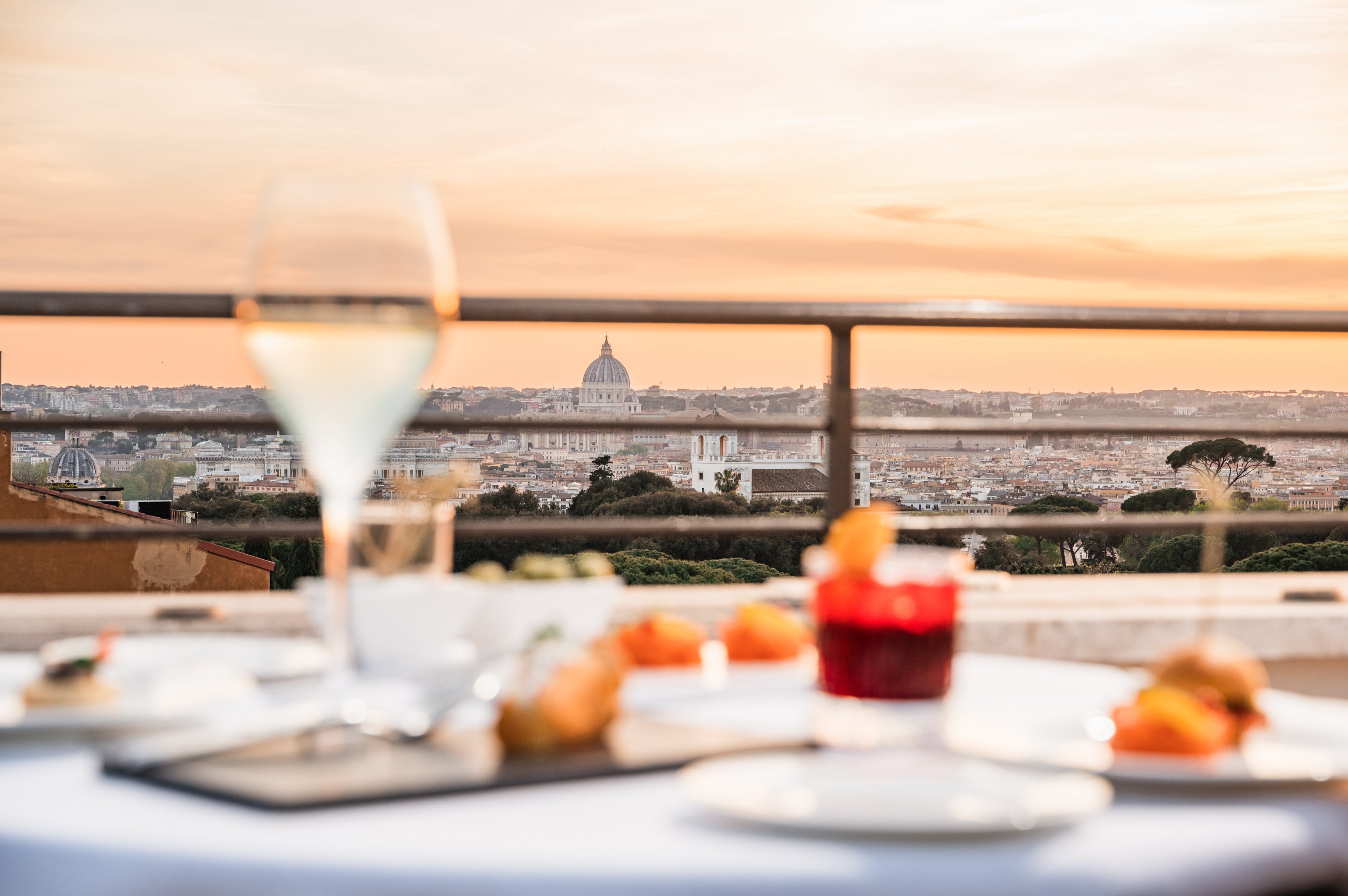 La notizia è che le meravigliose terrazze panoramiche del Marriott Grand Hotel Flora si aprono finalmente al pubblico, non solo dell’hotel (qui si fa la colazione) o degli eventi (è una delle location di matrimoni più amate della città). La vista spazia dal verde di Villa Borghese, ai tetti del centro storico di Roma, non senza far cadere l’occhio sulla cupola di San Pietro. Da un romantico aperitivo al tramonto con i drink pensati dal bartender Alessio Mercuri, a una cena con i piatti dello chef napoletano Massimo Piccolo, ideati appositamente per la terrazza. Piatti più freschi, ma anche classici inossidabili come gli Spaghettoni ai tre pomodori per cui lo chef è famoso.