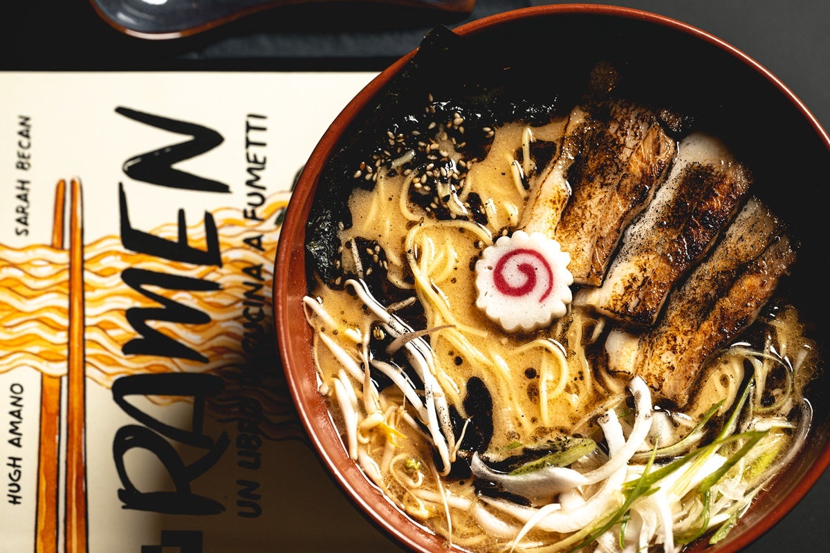 Questo è stato uno dei primi ramen introdotti nella proposta di Staj Noodle Bar. È quello con il sapore più intenso anche grazie alla presenza di ingredienti come il māyu, cioè l’olio di aglio bruciato. Inaspettatamente questo è stato il ramen più apprezzato da subito e per questo possiamo considerarlo uno dei signature dish del format. Di seguito ingredienti e ricetta.