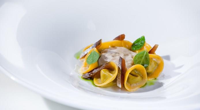 Ravioli di castagne e ricotta con salsa ai porcini e cerfoglio