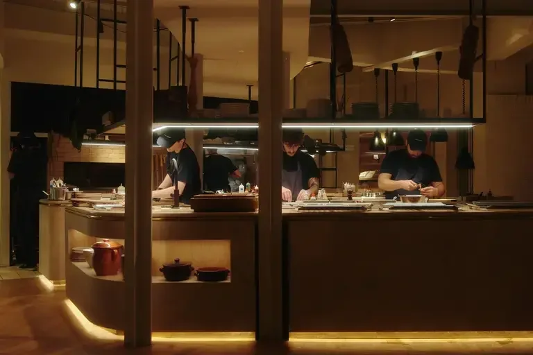 Qui il mare è protagonista in ogni sfumatura, ma non si ferma alla superficie: entra nel piatto attraverso una visione che esplora l’intero ecosistema adriatico. La frollatura del pesce, pratica che Ticchi ha contribuito a diffondere in Italia, è ormai solo un tassello di una cucina che guarda oltre, in continuo dialogo con terra e fuoco. Il nuovo spazio esalta questo percorso con una cucina a vista dove il calore della brace e il ritmo della sala si fondono in un’unica esperienza.