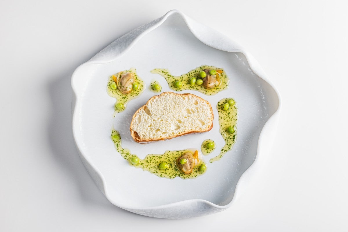 Da alcuni anni, lo chef cerca di esaltare il sapore concentrato delle teste di pesci e crostacei. Dopo molti esperimenti - utilizzando tutto, dal corallo (uova non fecondate dell'aragosta femmina) della testa alla cartilagine, fino alle "labbra" di una triglia - Dacosta ha creato un pane a base di teste di nasello per la stagione 2024. "Abbiamo utilizzato tutto il collagene e la gelatinosità presente nella testa del pesce per creare una base di pil pil per la pagnotta, sfruttando l'emulsione per creare una vera e propria baguette", spiega. "Il nostro obiettivo è cambiare il modo in cui le persone percepiscono questi pesci nella loro totalità", afferma.