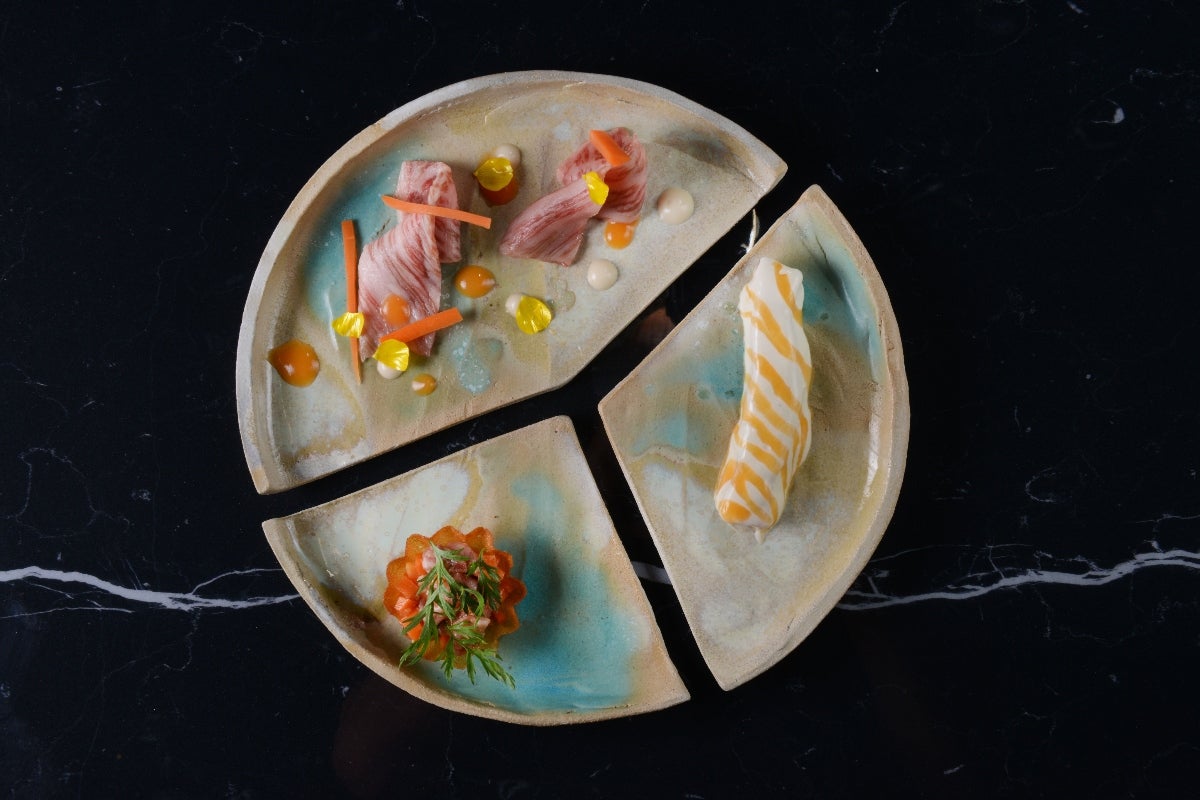 Si sta come in una sorta di Wunderkammer moderna, una “camera delle meraviglie” che raccoglie oggetti scelti dai galleristi liguri Alessandro Ferrada e Iacopo Briano, appassionati di paleontologia e curiositas legate al mondo dell’arte in tutte le sue accezioni. I piatti portano la firma dell’executive chef Davide Cannavino e riflettono appieno la duplice natura di Etra, tra influenze e suggestioni del contesto artistico che circonda l’ospite.