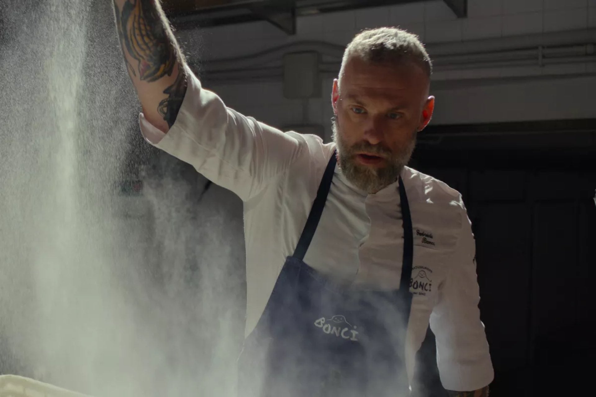 Bonci, che in passato è stato definito “Il Michelangelo della Pizza”, è un altro grande punto di riferimento in Italia e non solo. Con il suo Pizzarium, paradiso della pizza al taglio a Roma, ha cambiato definitivamente le regole del gioco. Chef’s Table Pizza muove dalle sue prime apparizioni in tv, per poi narrare la sua evoluzione e la sua crisi personale: un percorso mai semplice e scontato, tanto nella professione quanto nella vita privata. Gli esordi nel settore come chef nell’alta cucina, il passaggio in una macelleria per comprendere da vicino le logiche dell’allevamento, l’avvicinamento a un prodotto popolare come la pizza e l’attività agricola per elevarla nella qualità, ma anche nella concezione e nei princìpi che regolano ogni morso. Una ricerca incredibile nella direzione della sostenibilità più autentica, nella convinzione che mangiare sia un atto agricolo. Bonci ha il merito di essere stato uno dei primi a scommettere in un credo così forte, capace di mettere in discussione le antiche convinzioni (e convenzioni) gastronomiche. Sono tanti i giovani che sono passati per il laboratorio del maestro romano, da cui hanno appreso non solo una tecnica, ma un’intera visione del mondo della cucina: una nuova generazione di pizzaioli e non solo, che stanno seguendo la traccia lasciata dal maestro.