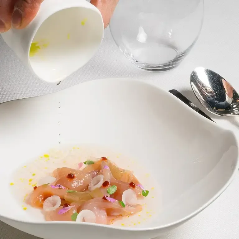 “Il concetto di fine dining sta evolvendo, le persone desiderano luoghi felici dove divertirsi e trascorrere momenti piacevoli”, dice Aiuraudo parlando di questa piccola perla toscana che è una destinazione gourmet nel pieno centro della bella (e caldissima) Firenze, a pochi passi dal Duomo e dall’Arno. La famiglia Cecchi, dall’impronta dinamica, creativa e imprenditoriale, ha scelto chef Airaudo per raccontare il capitolo di alta ristorazione all’interno dell’hotel. E come biasimarla? Paolo Airaudo ha lavorato in giro per il mondo, dal Messico al Perù, toccando anche note cucine europee come Arzak a San Sebastian, The Fat Duck a Londra e Magnolia in Italia. Nel 2015 apre il suo primo ristorante nel centro di Ginevra, la trattoria contemporanea La Bottega, che ottiene la sua prima stella Michelin in soli 4 mesi. Ma il suo ristorante più conosciuto è certamente quello ispirato da sua figlia Amelia che conta oggi due stelle.