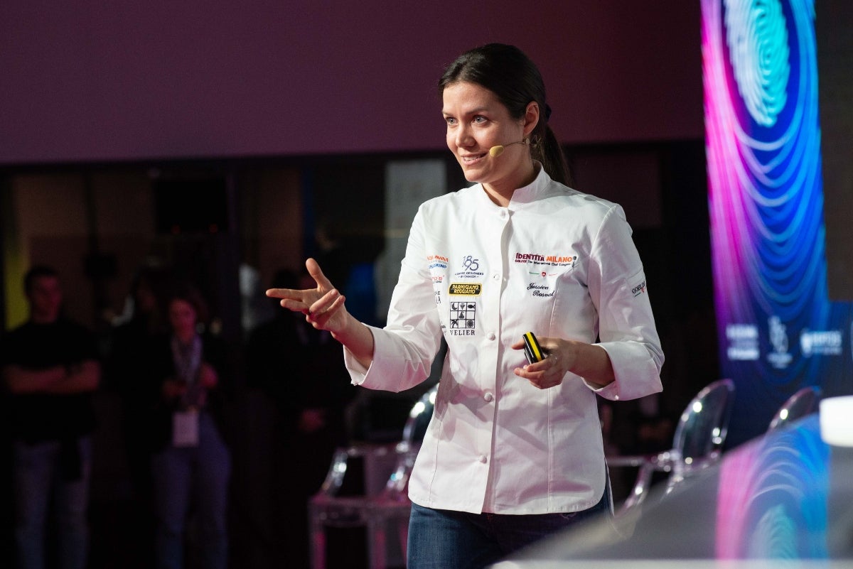 Si è parlato di brace e di fuoco vivo, ma anche di cotture al forno nel corso dell’intervento che hanno tenuto Jessica Rosval, chef di Casa Maria Luigia, ed Errico Recanati, chef del ristorante Andreina di Loreto (AN). Lo chef ha spiegato il suo progetti, che parte dal cuore, per una cottura alla brace e innovativa delle interiora.