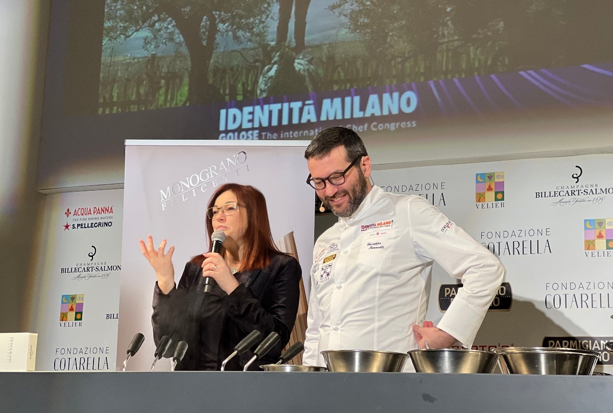 Camilla Cancellieri, brand ambassador di S.Pellegrino, dopo l’intervento con Massimo Bottura, è salita sul palco dell’Auditorium per premiare Richard Abou Zaki: è andato a lui, chef del ristorante Retroscena di Porto San Giorgio (FM), il Premio Acqua Panna S.Pellegrino Vent’anni che ogni anno viene conferito a giovani chef che si stanno distinguendo sulla scena gastronomica.
