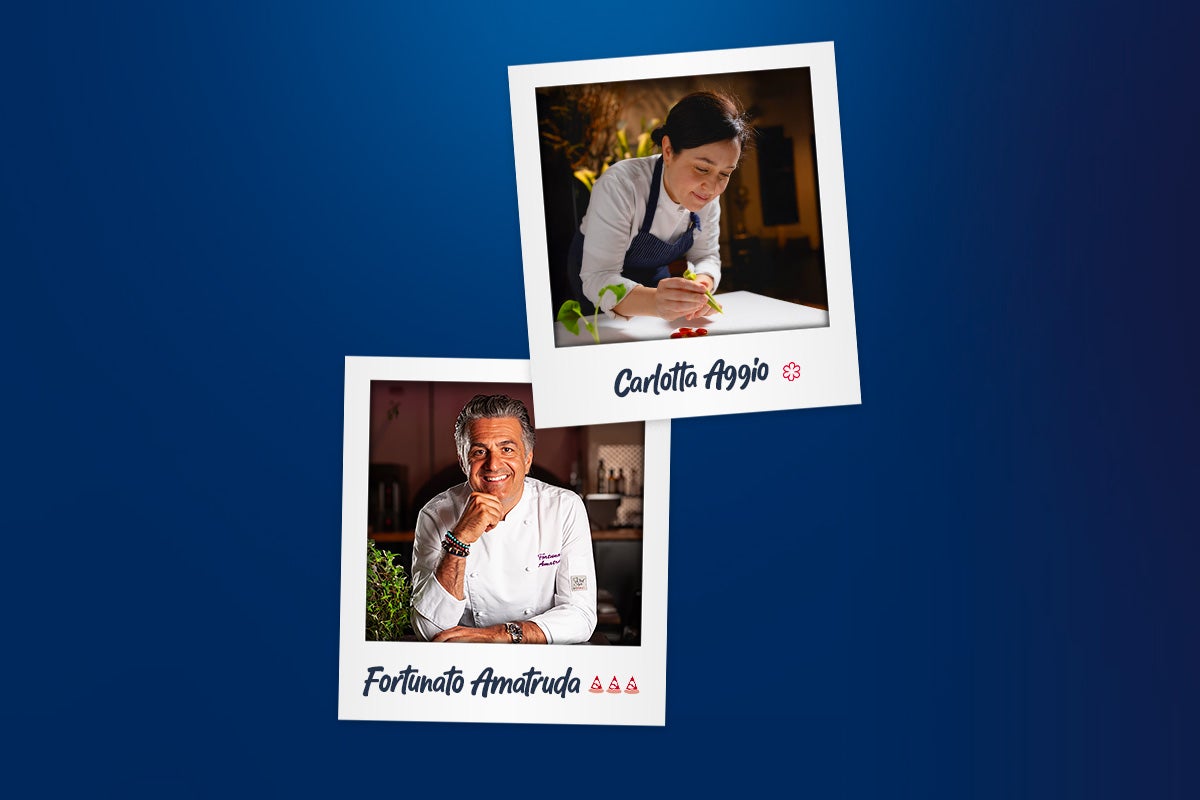 Un menu di quattro portate con entrée metterà in rilievo le caratteristiche della cucina dei due protagonisti. Da un lato, l’approccio professionale e i piatti legati al territorio di chef Aggio, originaria di Rovigo, da due anni e mezzo alla guida de Il Palagio, una stella Michelin nell’incantevole cornice del Four Seasons Hotel di Firenze: una chef giovane, con alle spalle un’esperienza decennale nella nota compagnia vocata all’ospitalità di lusso. Dall’altro, l’arte bianca firmata da Amatrudo, seconda generazione di una famiglia di pizzaioli originari di Tramonti, in Costiera Amalfitana, che nella sua pizzeria di Crema propone diversi tipi di lievitati: dalla pizza gourmet a spicchi alla tradizionale, alla pizza di Tramonti (di cui è ambasciatore), preparata con un impasto a base di farina integrale, farina di mais bianco e semi di finocchietto selvatico.