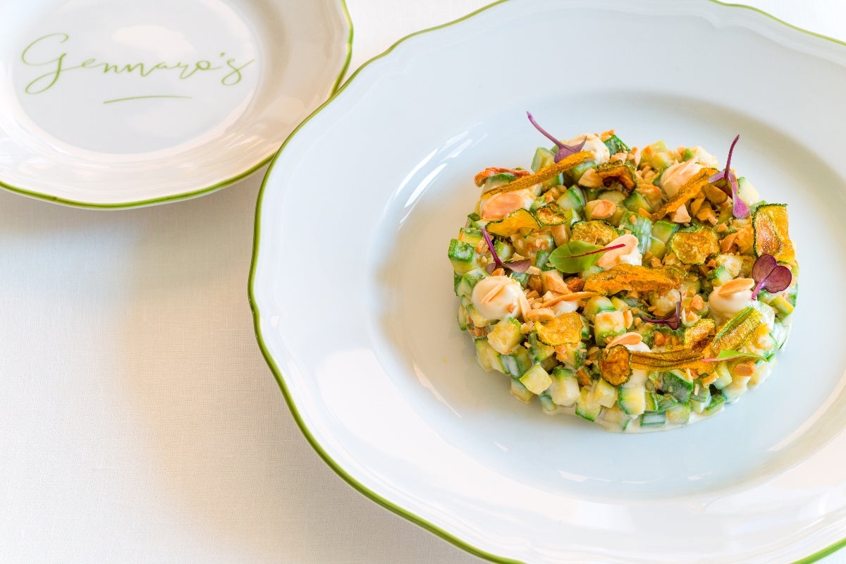 Oggi il fascino di quello che venne definito “l’hotel degli artisti”, punto di ritrovo di un vero e proprio collettivo creativo, rivive in uno spazio completamente rinnovato, secondo il progetto di Francis Sultana. In questa dimora accogliente, dove il vero lusso è sentirsi a casa lontano da casa, il designer di fama internazionale ha dato forma allo stile caprese, curato, mediterraneo e minimalista, e ha ripreso il mood della Dolce Vita anni ‘50. L’offerta gastronomica vede la sua massima espressione nel ristorante Gennaro’s, un omaggio al nome dello chef di casa, che ha dato una sua inequivocabile impronta personale al menu. Un format, quello del Gennaro’s, che è stato inaugurato lo scorso dicembre anche all’Apogée Courchevel, gioiello della Oetker Collection sulle Alpi francesi.