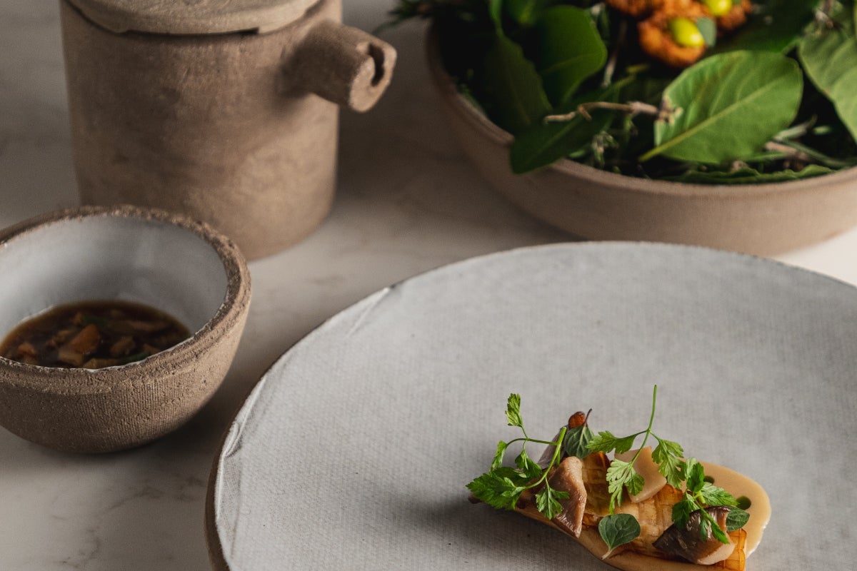 Quello del passato è il piatto che mi ha avviato nel mondo del fine dining. Si tratta di un mio signature dish, una ricetta storica che a rotazione inserisco sempre nei miei menu, soprattutto nei periodi estivi in cui il pomodoro si trova facilmente: Risone con acqua di pomodoro datterino giallo, infuso di tè lapsang souchong (un tè nero cinese che viene ritrattato e affumicato), che completo con stracciatella di bufala, curry e polvere di prezzemolo. Per il presente ce ne sono tanti di piatti rappresentativi del lavoro che stiamo facendo, ma scelgo il Fungo al Cubo (o "alla terza", detto in termini matematici), una portata presentata in tre servizi: un cardoncello scottato e nappato al burro, di scuola francese, con erbe, timo e sale affumicato (con gli scarti del fungo facciamo dei sottaceti e li usiamo come texture diversa del fungo, beurre blanc a base di fungo e olio al prezzemolo); per il secondo servizio prepariamo la cotoletta di fungo con maionese al prezzemolo, servita in un agglomerato di foglie che bruciamo e che dona un aroma fumé; dal momento che facciamo sempre un lavoro di recupero degli scarti, per il terzo servizio prepariamo un brodo di fungo molto intenso, fatto proprio con gli scarti: lo facciamo bere alla fine, viene fatto con scalogno, fungo e vino bianco. Il piatto del futuro? In questo momento mi risulta difficile pensare a una ricetta specifica, ma senza dubbio la filosofia che caratterizzerà la mia cucina di domani sarà dedicarmi sempre più al vegetale e alla raccolta di prodotti spontanei, che saranno al centro del prossimo menu.