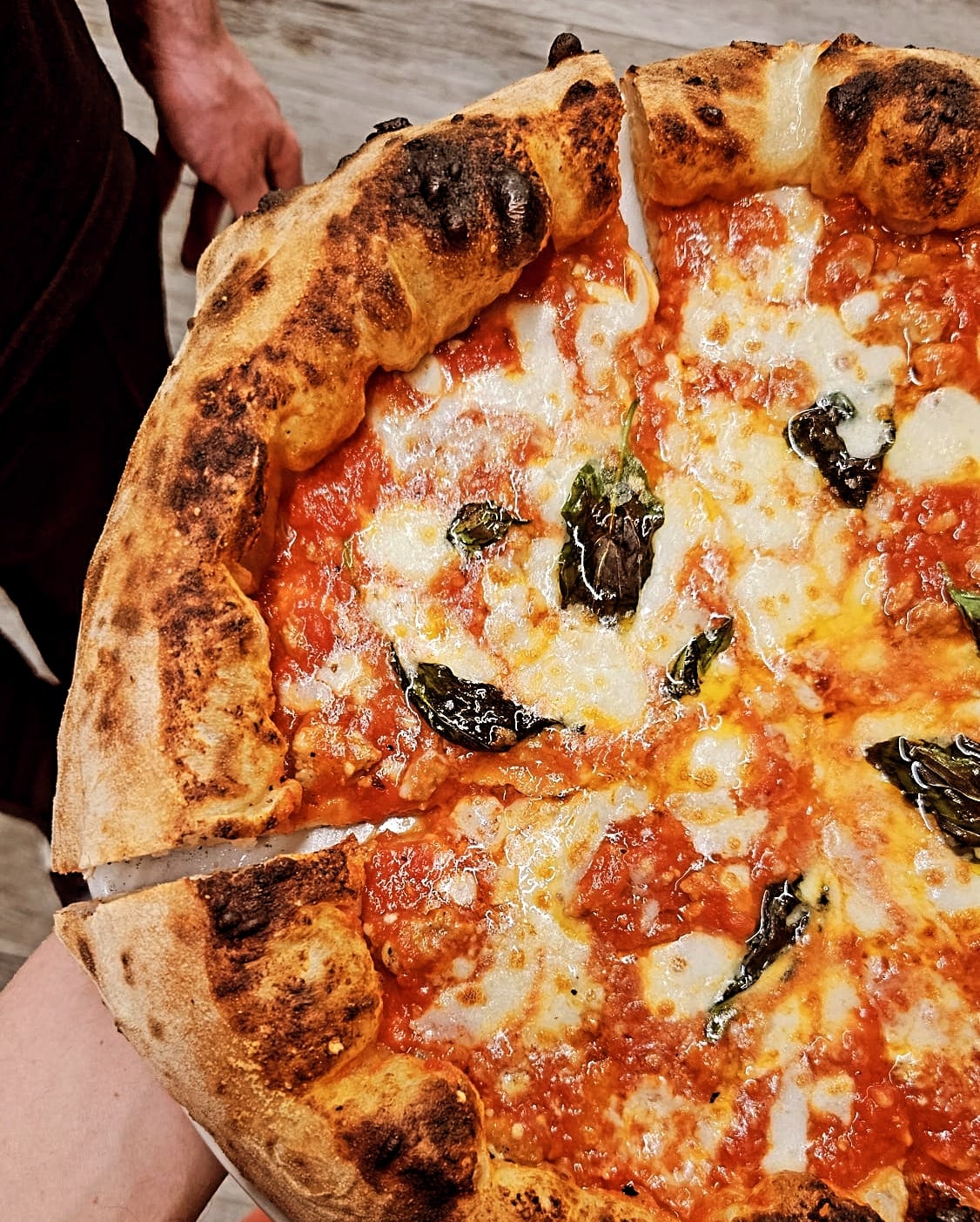 Andiamo con ordine. Raffaele è un ex ballerino di danze caraibiche a livello internazionale, oggi artigiano della pizza, al timone del locale con il papà Mimmo e il fratello Giuseppe. “Siamo una famiglia, non siamo mai in conflitto, per noi l'unione fa la pizza” ci racconta Raffaele. Ancora: “L'esperienza che ho maturato nel mondo della danza, fatto di creatività e di disciplina, mi ha permesso di trasferire nell'impasto e nelle creazioni la stessa precisione e intensità emotiva. E poi porto il mio passato anche nello stile, nel modo di rapportarmi, di stare con i clienti. Si deve trasmettere sincerità, ed è quello che cerco di fare, di recuperare l'empatia con il cliente: dobbiamo stare in mezzo alla gente, si deve creare un legame”.