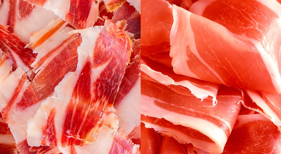 Ci sono prodotti e ingredienti che a un occhio distratto o poco competente sembrano identici, ma la cui differenza non può sfuggire a un esperto un gourmet. Prendiamo il Prosciutto crudo di Parma e il Jamón Ibèrico de Bellota, ad esempio: sono entrambi prosciutti, ma sono completamente diversi. Tutti e due appartengono alla categoria salumi di qualità, entrambi si consumano a fette ed entrambi derivano da cosce di maiale.