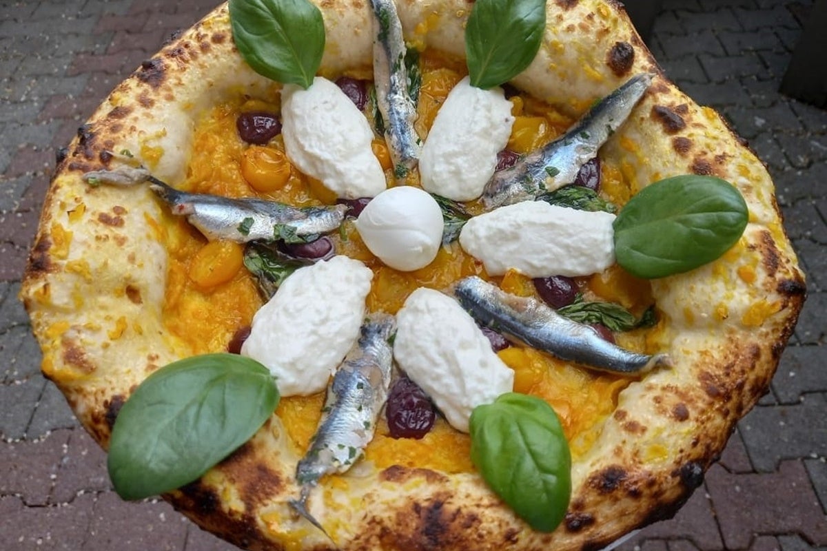 È una pizza contemporanea che va più sul friabile. Abbiamo sette pizze classiche e dieci speciali e sei gourmet. In più abbiamo la famosa 3 cotture e in Italia la facciamo solo in due, io e Francesco Martucci. Viene cotta prima al vapore a 130 °C, viene poi fritta in olio a 180 °C e viene finita in forno a legna o a gas a 380 °C. Si ottengono una scioglievolezza e una croccantezza uniche.