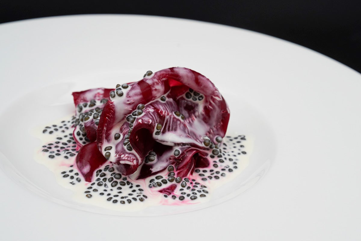 Eletto lo scorso anno Ambasciatore Unesco per la Biodiversità, lo chef, tra gli ingredienti dei piatti, utilizza i prodotti dei suoi orti biodinamici: veri e propri giardini affacciati sul blu, a ridosso della montagna, dove le coltivazioni si basano sull’influenza della Luna sulla Terra. Ecco dunque un menu che segue le fasi lunari, che si declina in quattro percorsi: Radici, Foglie, Fiori, Frutta. Se per i prodotti ittici Colagreco si rivolge ai pescatori del Mediterraneo, per la carne, i volatili e i latticini ricorre agli allevatori della zona e alle realtà dell’entroterra. Tutto nella logica della filiera corta, nel rispetto della natura e dei suoi tempi. Il risultato? Un tripudio di erbe aromatiche, ortaggi, agrumi e fiori.