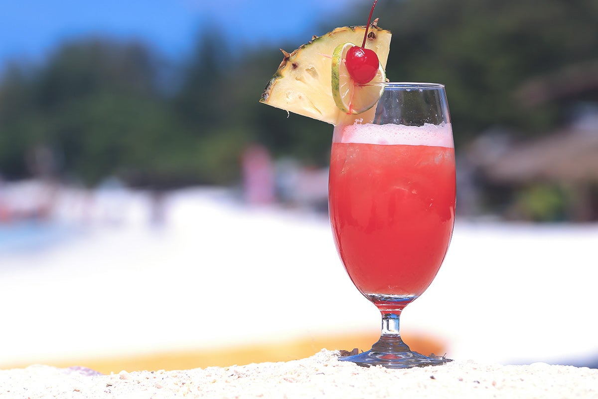 Agitate fino a completo raffreddamento. Riempite un uragano con ghiaccio fresco, filtrate il cocktail nel bicchiere e servite. Se lo desiderate, guarnite con uno spicchio di ciliegia e/o ananas.