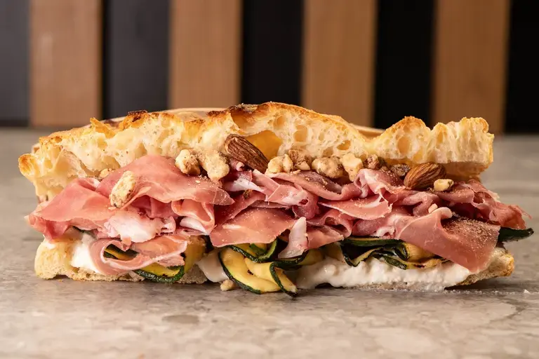 Non posso non iniziare dal mio locale dedicato allo street food, PFM - Premiata Focacceria Mazzini a Marzamemi: si prende e si porta via, ma c’è anche qualche posto a sedere nello spazio all’aperto. Qui propongo una focaccia bianca farcita con salumi, creme, verdure fresche, formaggi e prodotti ittici locali. Prepariamo una teglia romana croccante, alta, che tagliamo a metà e farciamo al momento. Una sorta di schiacciata toscana, farcita con prodotti di nicchia e ingredienti ricercati, che noi chiamiamo il crunch siciliano, ottenuto da impasto indiretto, con una lievitazione di 36 ore e un mix di due farine tipo 1. Tra le proposte - circa 20 declinazioni diverse, tra classiche, speciali e vegetariana - da non perdere la Parmigiana, ripiena di parmigiana di melanzane fatta in casa da noi. L’idea è quella di aprire una serie di locali di questo tipo, in altri paesi della Sicilia. Per ora l’apertura è stagionale, da aprile a ottobre.