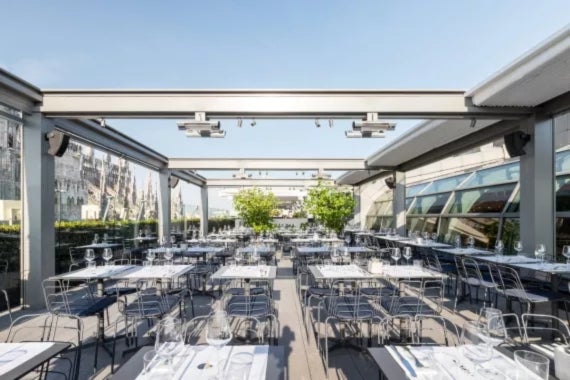 Restiamo ancora in tema i rooftop bar a Milano Duomo. Sì, perché c’è un’altra bella location perfetta per chi cerca il posto giusto per fare un aperitivo in terrazza a Milano. Per bere uno Spritz ammirando la Madonnina e il Duomo di Milano, con le sue guglie gotiche, c’è anche la Terrazza Aperol. Come vi si accede? Basta entrare al Mercato del Duomo e salire al secondo piano. Questo è uno dei rooftop bar di Milano con una delle migliori (e più centrali) viste, perfetto anche per chi cerca cocktail bar con cucina in Duomo.