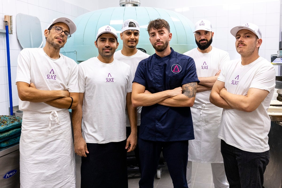 Già il nome, Slice, evoca subito una fetta di pizza. Ed è un po’ così che inizia la serata in questa pizzeria in cui si entra trovandosi una bella bottigliera da cocktail club sulla destra. “E perché non fermarsi e ordinare un drink, se magari c’è qualche minuto da attendere?”, propone Mazziotti. Il bancone è affidato alle mani esperte di Valerio Trimonti, che ha elaborato una drink list piaciona, che possa ben sposarsi anche con le pizze. “Per ora, ma è passato solo un mese dall’apertura, il cocktail funziona più all’ora dell’aperitivo, momento in cui al drink vengono accompagnate le slice ripiene”, dice Mazziotti. Da abbinare magari con una Fake Beer (che davvero si presenta come una birra, spiazzando all’assaggio), uno dei drink più richiesti insieme al Basil, che essendo aromatizzato al basilico attira l’occhio per il facile abbinamento alla pizza Margherita. In linea anche una selezione di vini promettente e birre alla spina.