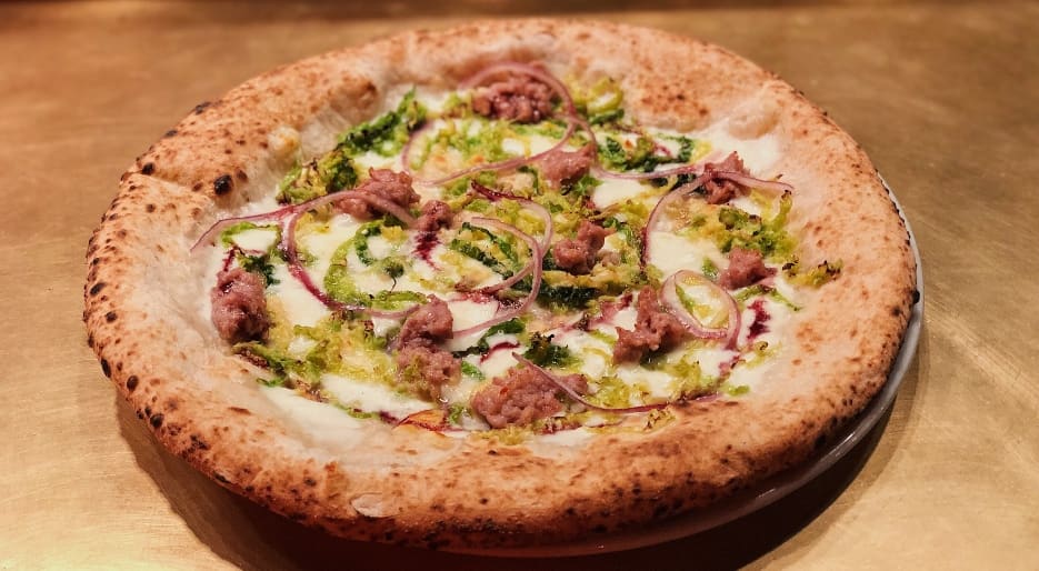 Ebbene sì, anche la cassoeula, tipica ricetta milanese a base di verza e carne di maiale, adatta alle basse temperature, finisce sulla pizza. L'idea è di Lorenzo Sirabella di Dry Milano, vincitore del Premio S.Pellegrino & Acqua Panna Giovane Pizzaiolo dell’anno all'edizione 2019 di 50 Top Pizza. Il giovane pizzaiolo, originario di Ischia, omaggia così la città meneghina, con una rilettura in chiave contemporanea, scomposta e alleggerita, della mitica cassoeula: verza, salsiccia luganega, riduzione di vino rosso, cipolla rossa, Grana Padano e fiordilatte.