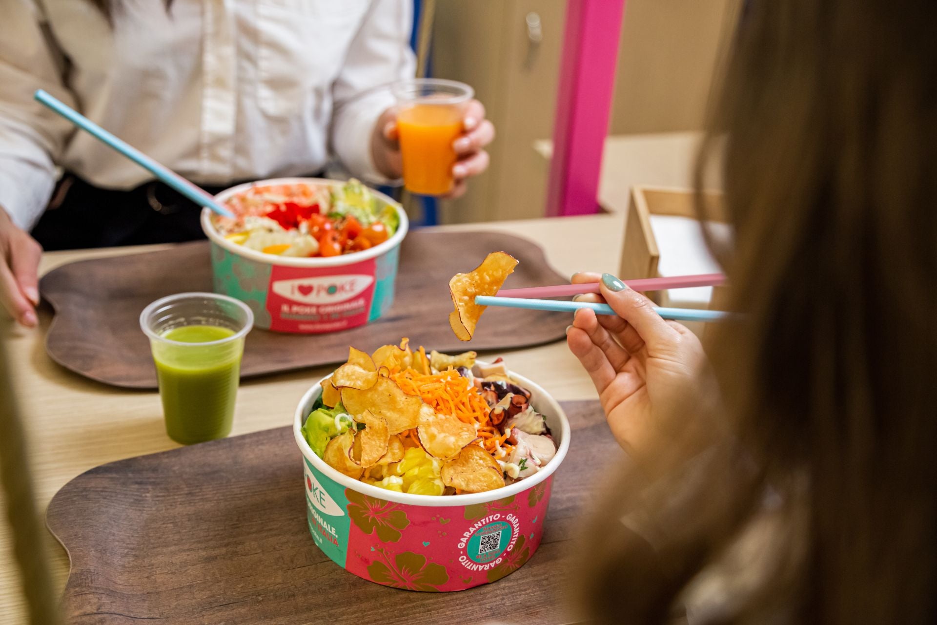 Il primo Poke Bar di Roma, solo 15 posti in zona Monti, è diventato grande e ha appena aperto una nuova, grande sede in piazza Re di Roma, la settima della catena romana. Un locale di 150 mq, con un tavolo sociale che si struttura attorno ad un albero di banano di 3 metri, con cui i due soci classe 1992 Alessandro De Crescenzo e Riccardo Bellini sono partiti alla conquista del quartiere Appio-Tuscolano. L’ultima apertura dell’insegna con il pesciolino azzurro e rosa si aggiunge a quelle di Monti, Ponte Milvio, Marconi, Prati, Piazza Istria e Tiburtina. Visual design che promette un’esperienza in puro stile West Coast Hawaiian Bar, personalizzazione, attenzione alla qualità delle materie prime e filosofia no waste: sono questi i tratti distintivi di Ami Pokè. I prodotti ittici scelti da questa pokeria romana sono certificati Friend of the Sea e frutta e verdura provengono da aziende agricole di fiducia e preferibilmente a Km 0. Packaging e posate sono ecosostenibili, realizzati con materiali derivanti da fonti vegetali rinnovabili o completamente riciclabili e la catena di pokerie aderisce inoltre all’app antispreco Too Good To Go.