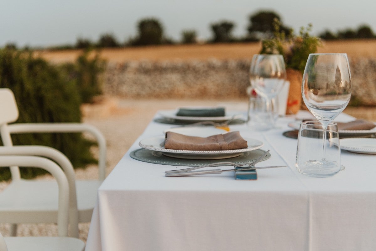 Ricco di suggestioni salentine, il menù permette di scoprire le specialità locali rivisitate con un tocco di creatività: Raviolo con stracciatella, pomodoro datterino e basilico cristallizzato, Maltagliate di grano saraceno con crostacei e vongole, Ciceri e tria (minestra di ceci locale servita con pasta fritta). Per un momento romantico, vi consigliamo di provare l’esperienza dell’antica torre fortificata, dove sarà possibile cenare a lume di candela, lasciandosi guidare alla scoperta del Menù Torre, un percorso di degustazione in cinque tempi.