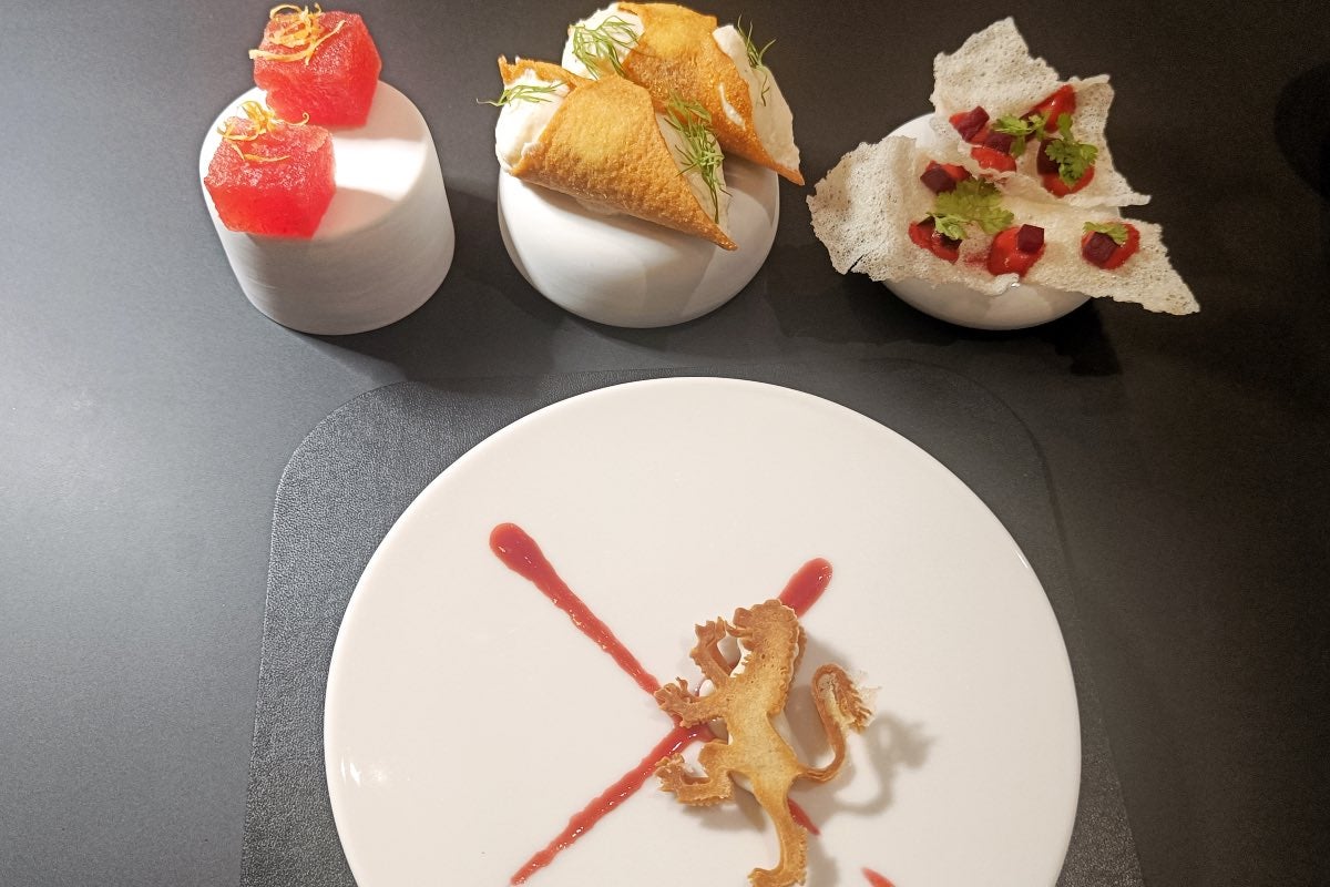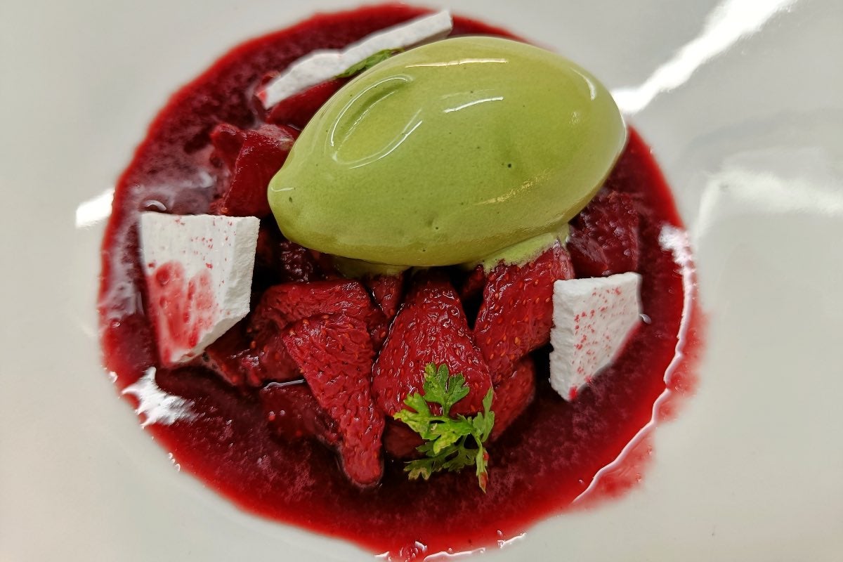Il fil rouge della cena? “Il tema è rimasto quello della sostenibilità, i due piatti che abbiamo portato alla competizione erano forse i più sostenibili, ed erano entrambi vegetali. Abbiamo deciso quindi di fare una serata tutta vegetale, all’insegna della sostenibilità, proseguendo così tutto il filone del tema riportato nella competizione di S.Pellegrino Young Chef Academy Competition 2022-23”, spiega Modesti.