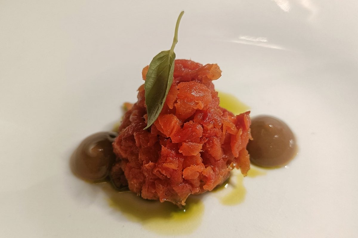 Scoprite qui di seguito i piatti del menu vegetale a quattro mani proposto da Davide Modesti e Michele Antonelli, dall'aperitivo al dessert.