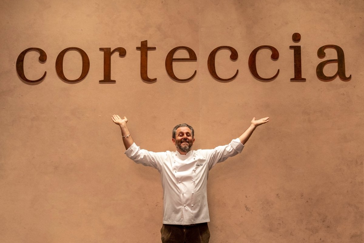 Molti lo hanno conosciuto a L’Imbuto di Lucca, dove ha conquistato cuori e palati con il suo approccio irriverente e giocoso, ma soprattutto con piatti iconici come la mitica Bistecca Primitiva, carne di manzo cruda servita su una corteccia di pino caldo. Ora, però, lo chef Cristiano Tomei porta la sua cucina rivoluzionaria a Milano, dove da meno di una settimana ha inaugurato Corteccia: questo è il nome (non casuale) che ha scelto per la sua nuova osteria contemporanea meneghina. Il primo locale nel capoluogo lombardo firmato dal cuoco ex surfista, originario di Viareggio, si trova in pieno centro, in corso Europa 12, e già si candida a diventare uno degli indirizzi più frequentati della città. La filosofia con cui Cristiano Tomei apre il nuovo ristorante a Milano è la stessa che anima L’Imbuto, come racconta lui stesso, ma certamente declinata in chiave più diretta e concreta, pensata per una clientela variegata - dal curioso che lo segue nelle apparizioni televisive al giovane appassionato di cucina, al business man.