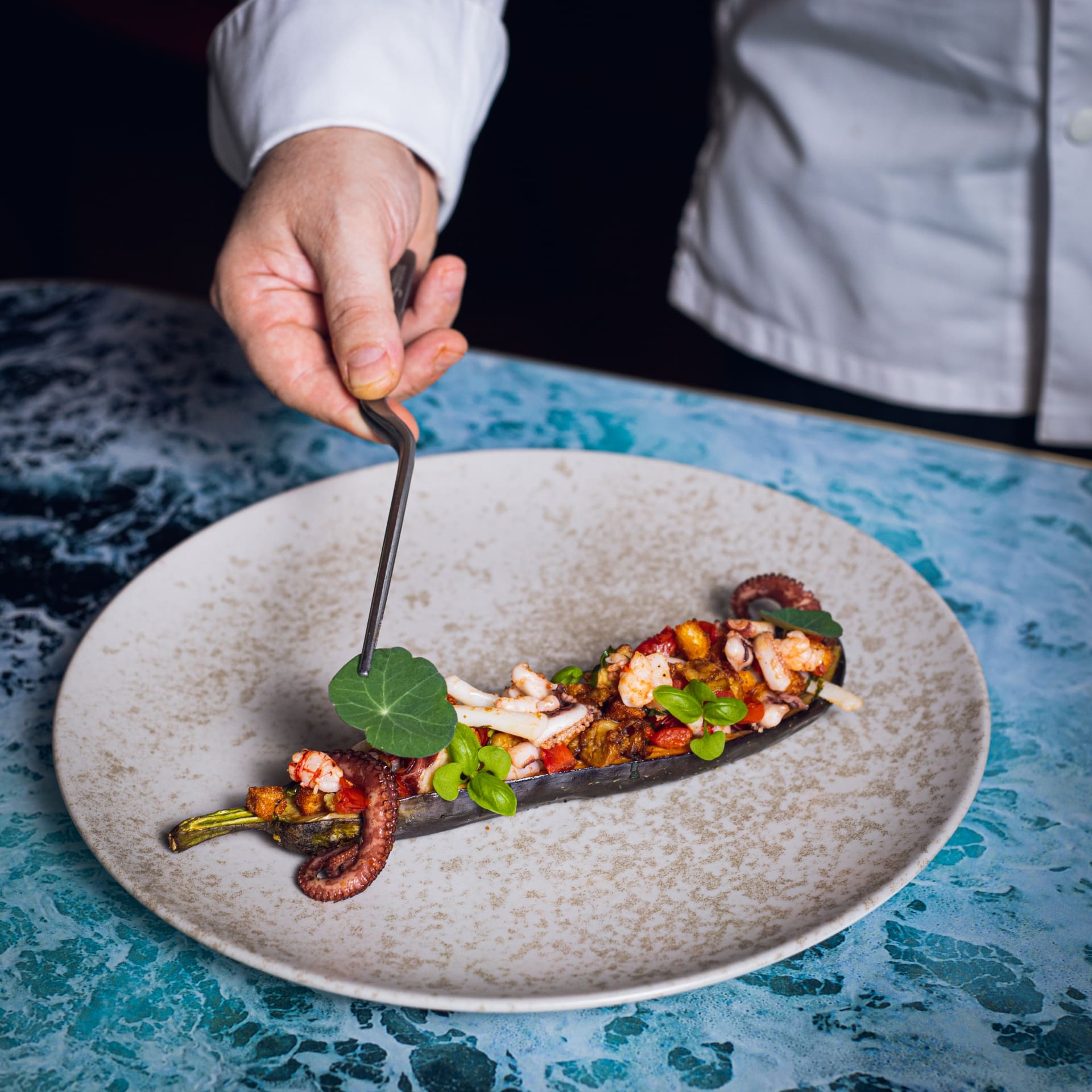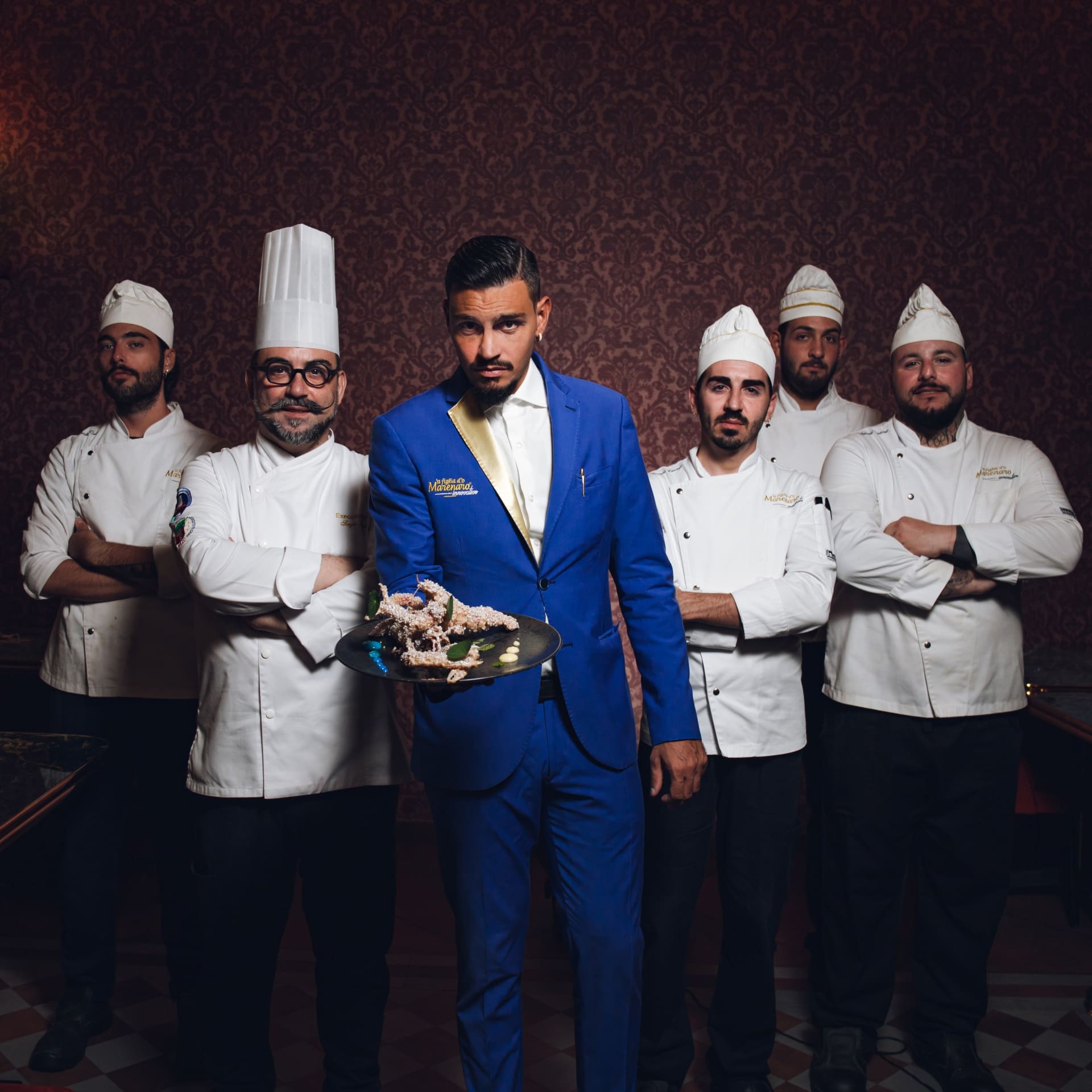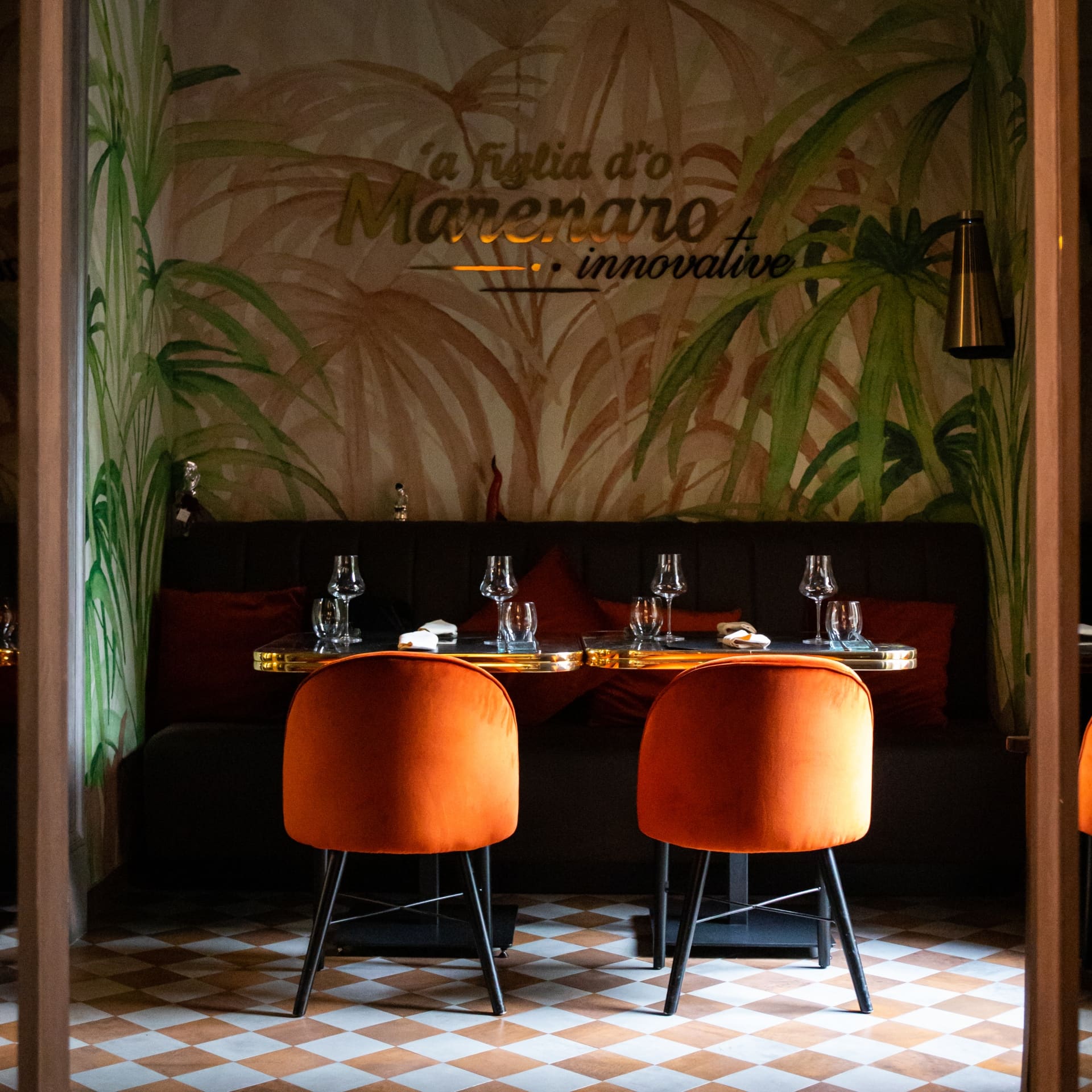 Salendo al primo primo piano, invece, si entra negli eleganti spazi di Innovative: inaugurato quattro anni fa, rappresenta l'evoluzione gastronomica di ‘A Figlia d’ ‘o Marenaro, in chiave creativa e gourmet. Alla guida del ristorante troviamo il giovane Giuseppe Scicchitano, figlio di Assunta Pacifico. A poco più di trent'anni, Giuseppe trasforma e fa sua l’eredità della mamma e del nonno, che negli anni Quaranta vendeva per strada il “brodo di purpo” con il suo carretto.