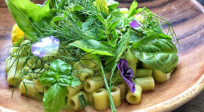 Leggi la ricetta completa dei tubetti con piselli freschi, fave ed erbe.