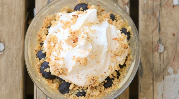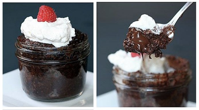 Una volta c'erano gli spaghetti di mezzanotte, ma oggi possiamo dare una svolta gastronomica a certe abitudini e puntare tutto sul brownie dal cuore morbido, anche nella versione senza glutine. Prendete una tazza, riempitela per un quarto di zucchero, per un quarto di farina e aggiungi 2 cucchiai di cacao in polvere, un pizzico di sale, 2 cucchiai di olio e un uovo. Mescolate bene, eliminando i grumi e ponete al centro dell'impasto uno o due quadrotti di cioccolata fondente o al latte o un cioccolatino ripieno. La tazza va lasciata in microonde alla massima potenza per un minuto e mezzo circa. Si può servire praticamente subito decorando con panna montata e un fruttino di bosco. Halleluja. (foto: theyummylife)