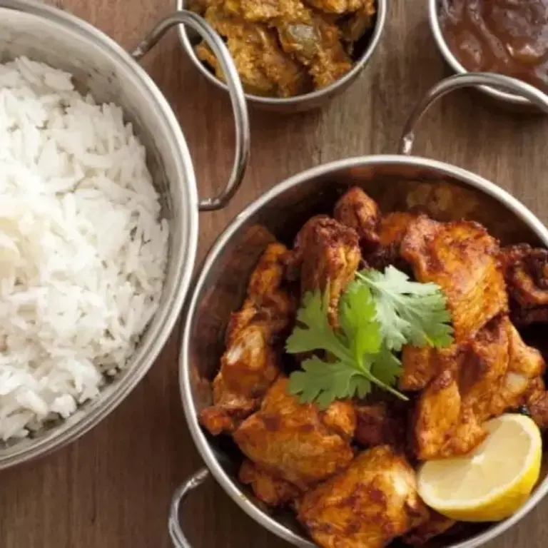 Potete assaggiare l’Est dell’India, con un piatto di Aloo Gobi (patate e cavolfiori fritti con spezie a secco) o il Pesce al Curry, pesce spada fatto con aglio, cipolla e zenzero tuffato in una zuppa di pomodoro. Magari in cui tuffarci dentro dei Bathura, il pane fritto e areoso. E poi il piatto forte, quello che può creare dipendenza: il Pollo Hyderabadi. Questo pollo, fatto con yogurt, cipolle, curry, limone, zafferano e curcuma, e accompagnato da riso basmati e un chutney di menta e labaneh, è il comfort food di cui vorreste innumerevoli piatti, uno dietro l’altro.
