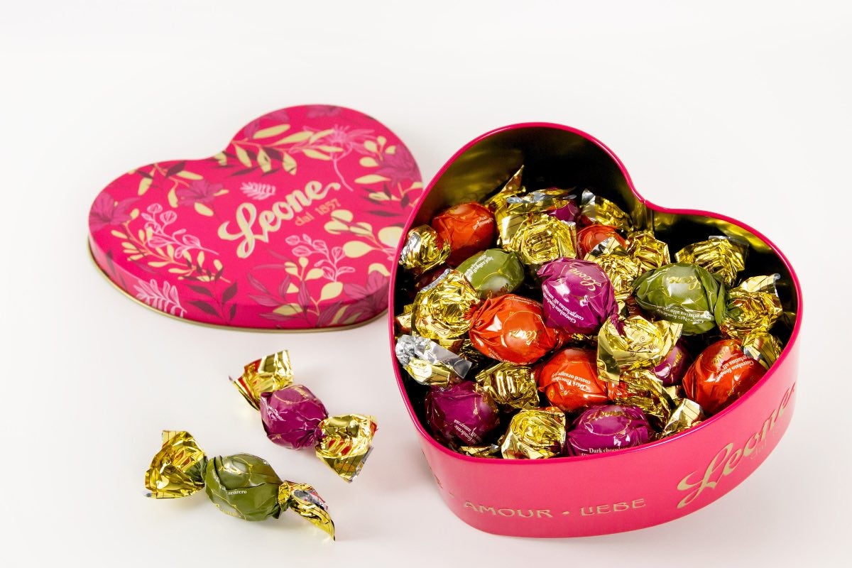 Attiva dal 1857, Leone è un'altra storica maison torinese che per la festa degli innamorati ha pensato a una collezione ad hoc: l'elegante latta a forma di cuore, pensata per celebrare San Valentino, tra colore e dolcezza. Protagoniste del 2023 sono le boule dal cuore morbido di gelatina, ricoperte di cioccolato fondente e declinate nei gusti di amarena, zenzero e arancia. Immancabili le carte variopinte, a richiamo dello stile vintage del brand.