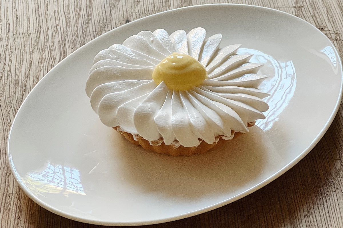- Babà alle fragole e timo, crema di latte e perle di limone