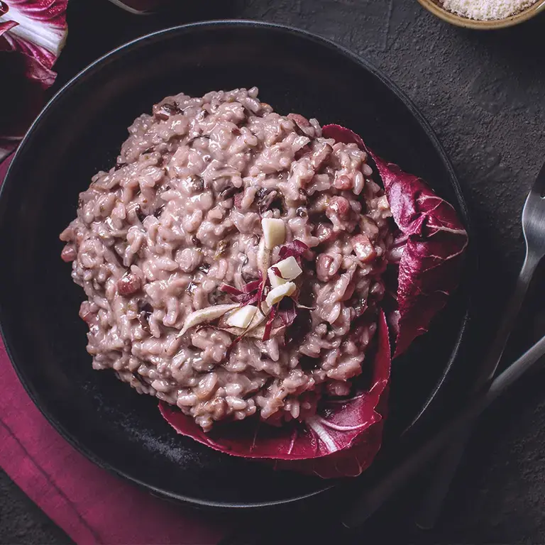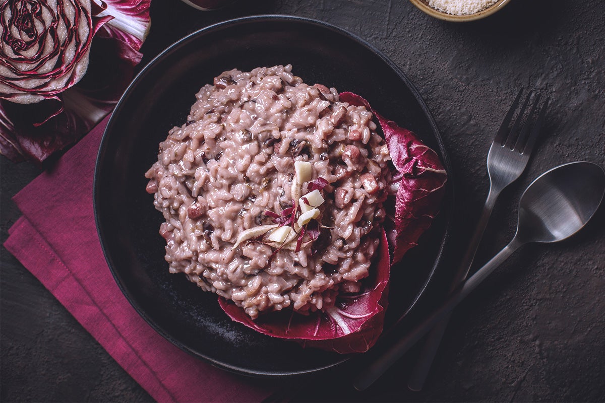Il radicchio, con le sue foglie croccanti e colorate e il sapore piacevolmente amarognolo, fa la sua comparsa nei mercati ortofrutticoli tra ottobre e marzo, ma alcune varietà sono disponibili fino a maggio. Leggero e facilmente digeribile, è ricco di sali minerali, vitamine e fibre. Esistono numerose varietà di radicchio, distinte in base alle caratteristiche della pianta e in base al periodo di raccolta. Può essere mangiato sia cotto che crudo e si presta come ingrediente nella preparazione di primi piatti, secondi, o contorni per accompagnare carne, pesce o formaggi. Nei risotti lo troviamo spesso abbinato a gorgonzola, taleggio o provola, ma si sposa bene anche con sapori più forti, come lo speck. Al forno, in padella o grigliato, le ricette con il radicchio sono davvero infinite, e tutte da sperimentare.