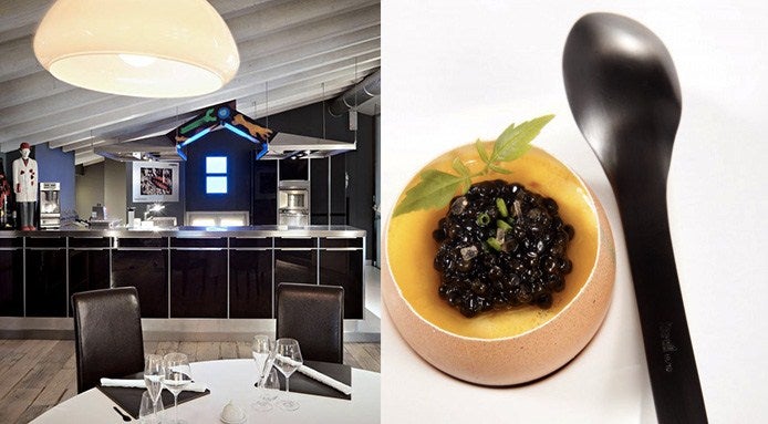 I piatti sono quelli per cui vale tutta l'attesa: fra i suoi piatti più famosi il suo Ghiacciolo di ostrica, limone e liquirizia (il piatto che lo rappresenta di più), la Lumaca alla bresciana e alla bourguignonne con il guscio che si mangia, fino al Risotto Mantecato al Taleggiorosso e marmellata di fragole e polvere di caffè o Consistenza strapazza dell'UOVO (nell'immagine a destra qui sotto).