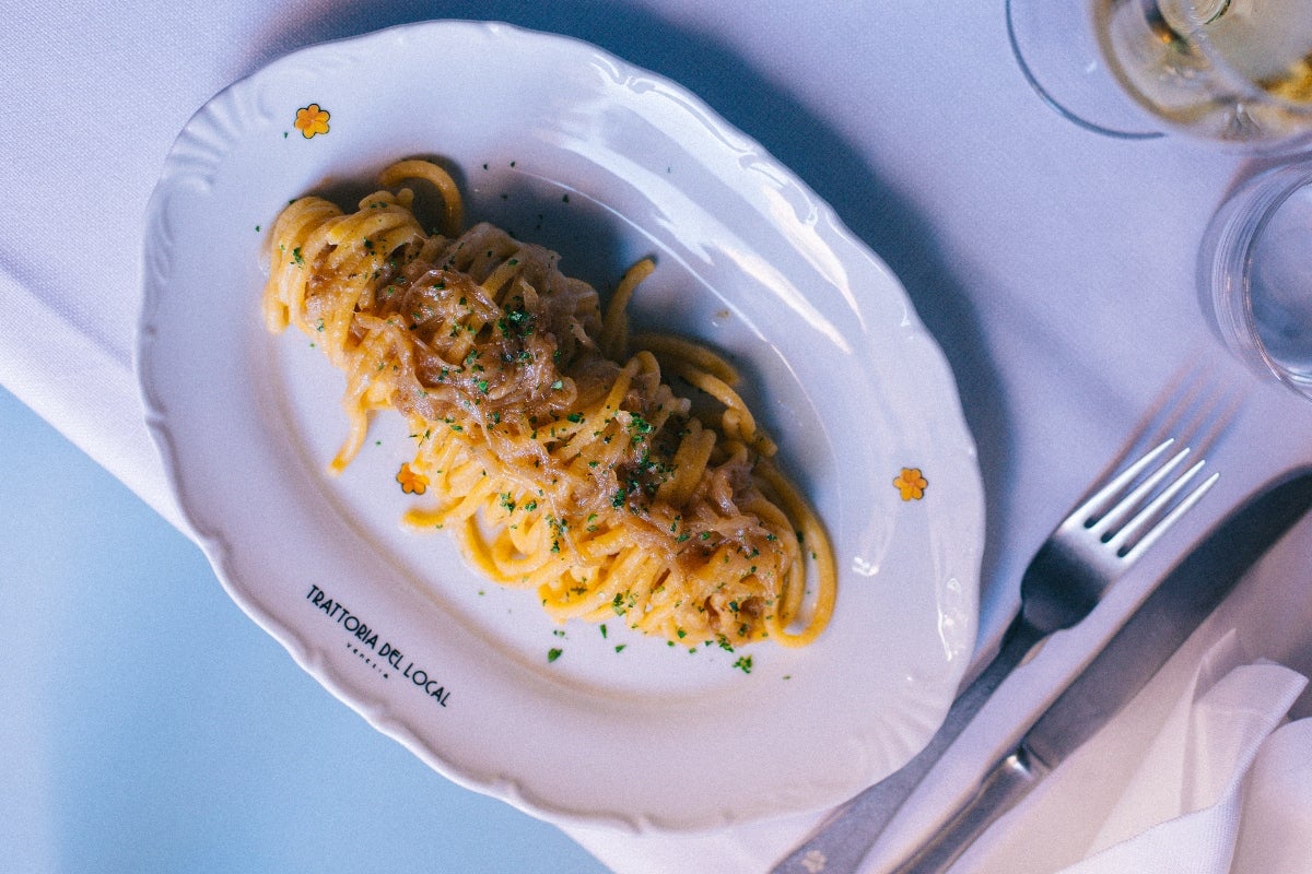 In una padella disporre l’olio e soffriggere lentamente le acciughe. Quando saranno quasi dissolte, aggiungere le cipolle e lasciarle stufare per circa 45 minuti, prestando attenzione a non far colorare la cipolla.
